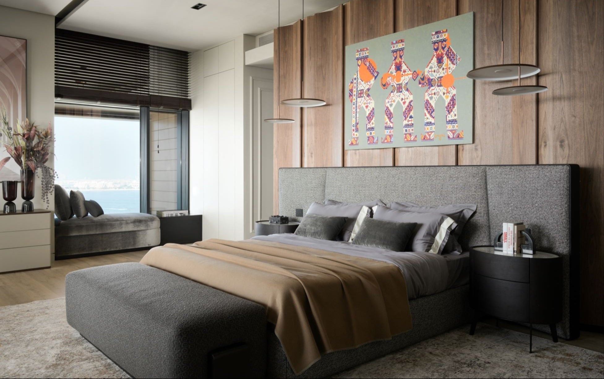 Bed for Muse Interiors. Damac Hills. Dubai, UAE.