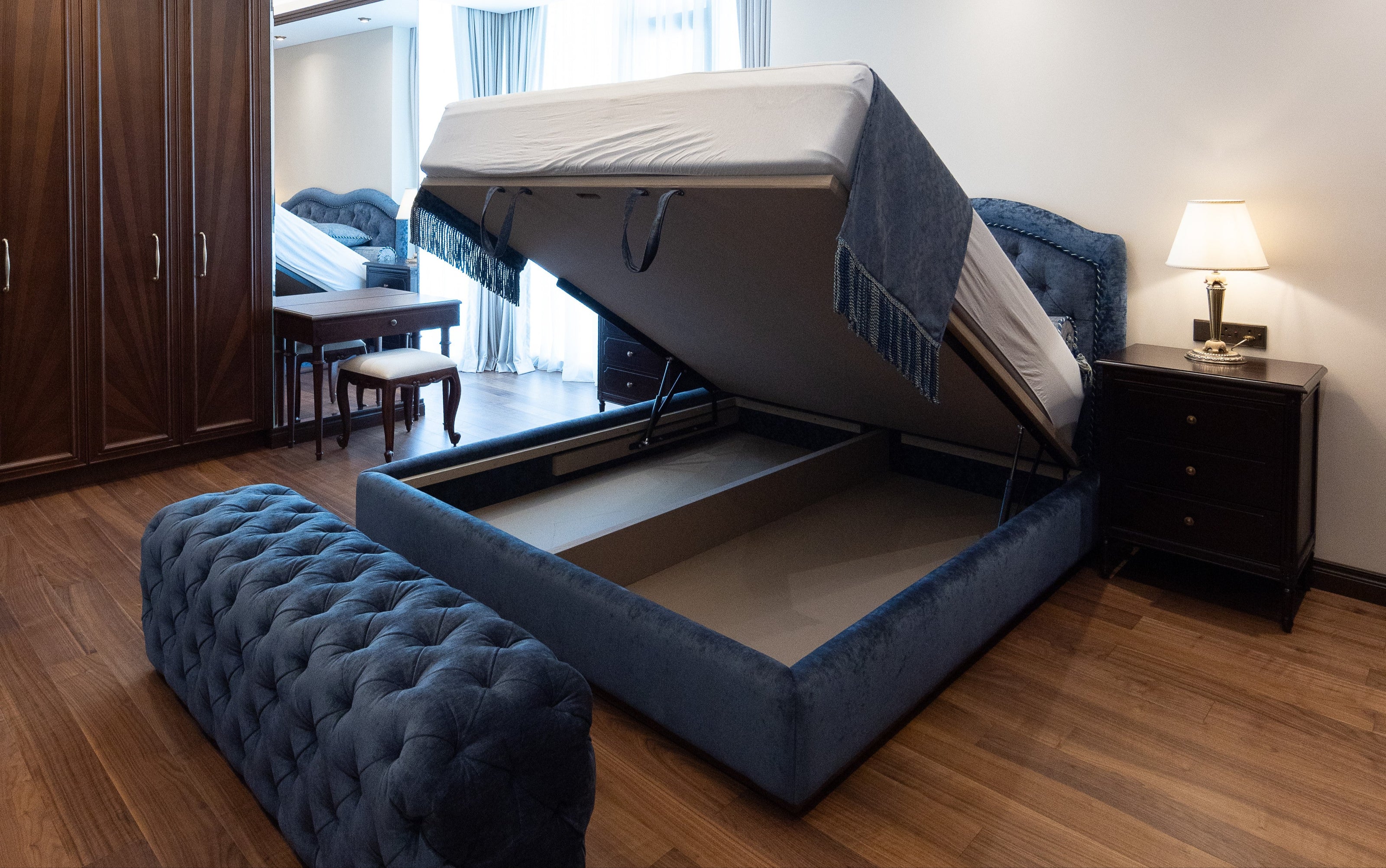 Hydraulic Bed and Bench for OK Design. Bulgari villa. Dubai, UAE.