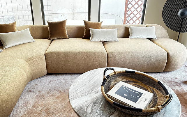 Sofa and Set of Marble Tables for Julia Polo Live Large. Sur La Mer Villa. Dubai, UAE.