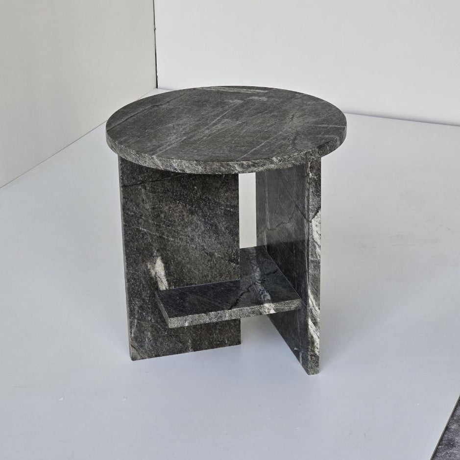 Experience luxury with the NUA bedside table, expertly crafted from stunning grey-white marble. This elegant piece combines practicality with exquisite design.