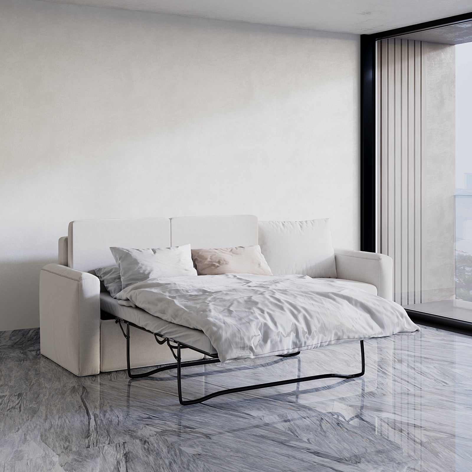 Custom made sofa bed with pull out folding mattress mechanism, fully upholstered in standard range stain proof FibreGuard fabric.